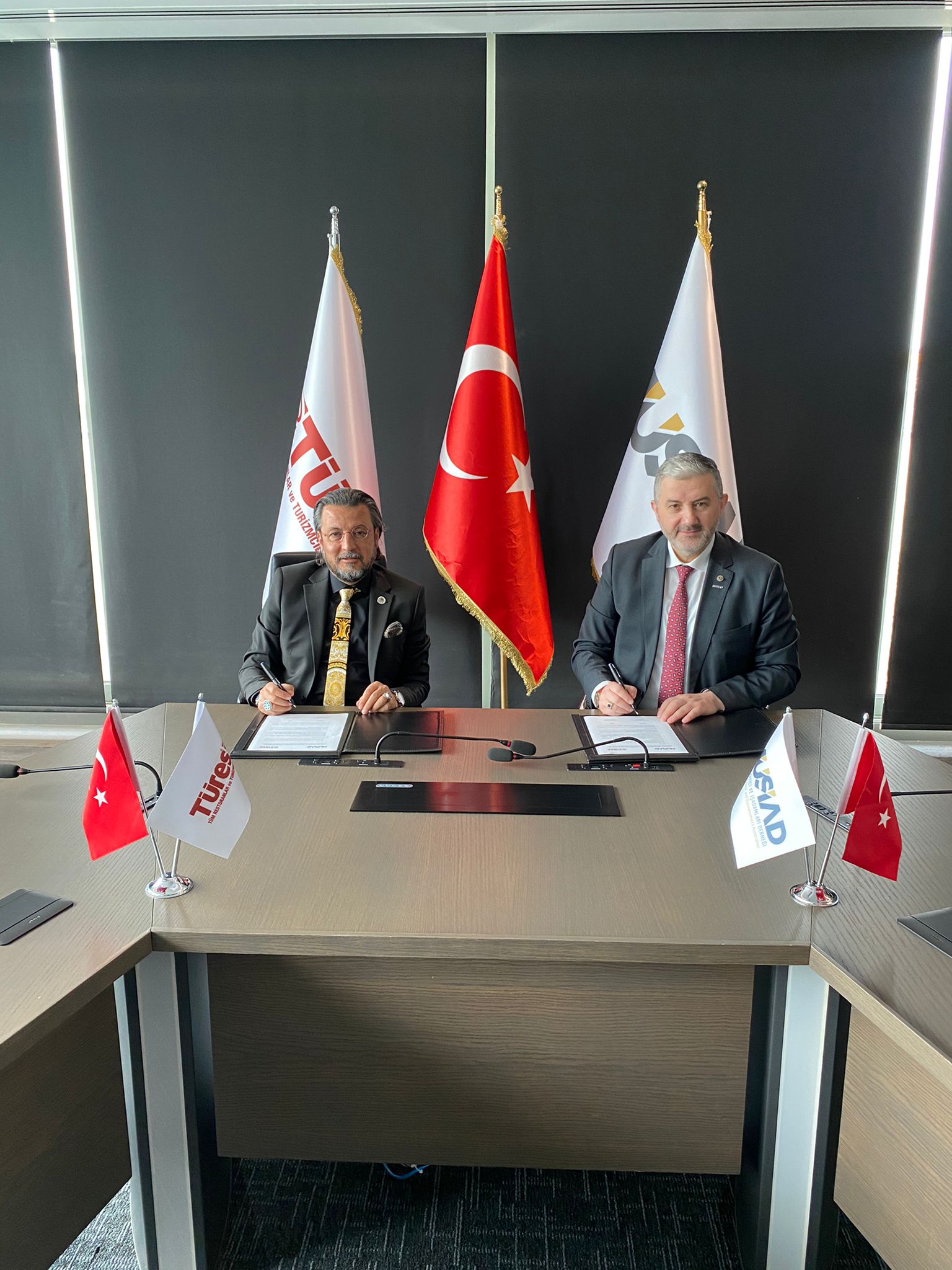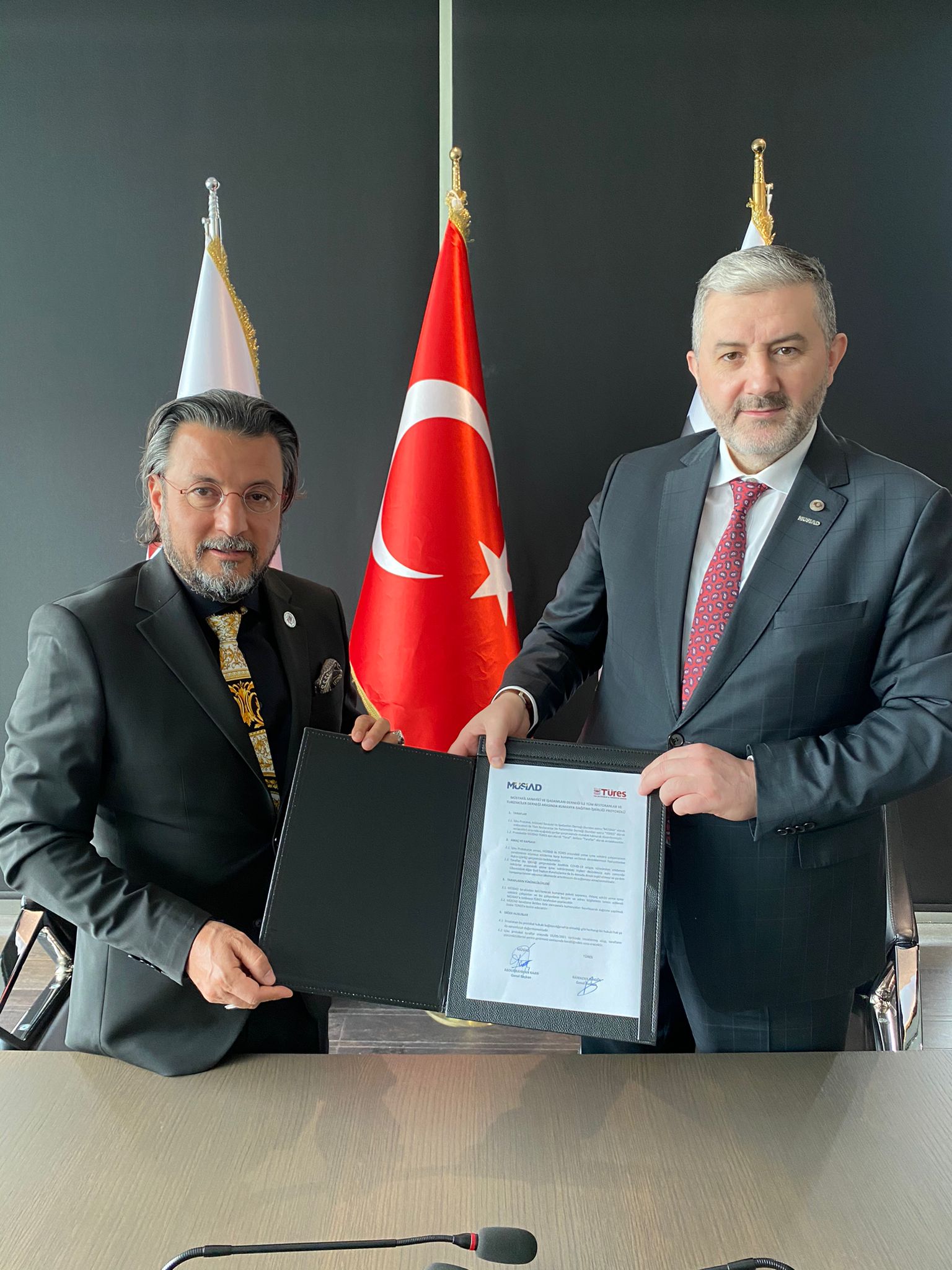 Protokol töreni, MÜSİAD Genel Başkanı Abdurrahman Kaan ile TÜRES Genel Başkanı Ramazan Bingöl’ün katılımıyla düzenlendi.