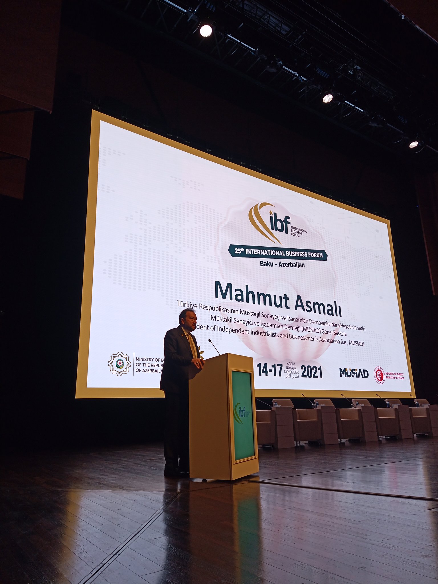 Azerbaycan'ın başkenti Bakü'de, Müstakil Sanayici ve İşadamları Derneği (MÜSİAD) öncülüğünde gerçekleştirilen "25. Uluslararası İş Forumu (ıBF)" düzenlendi.