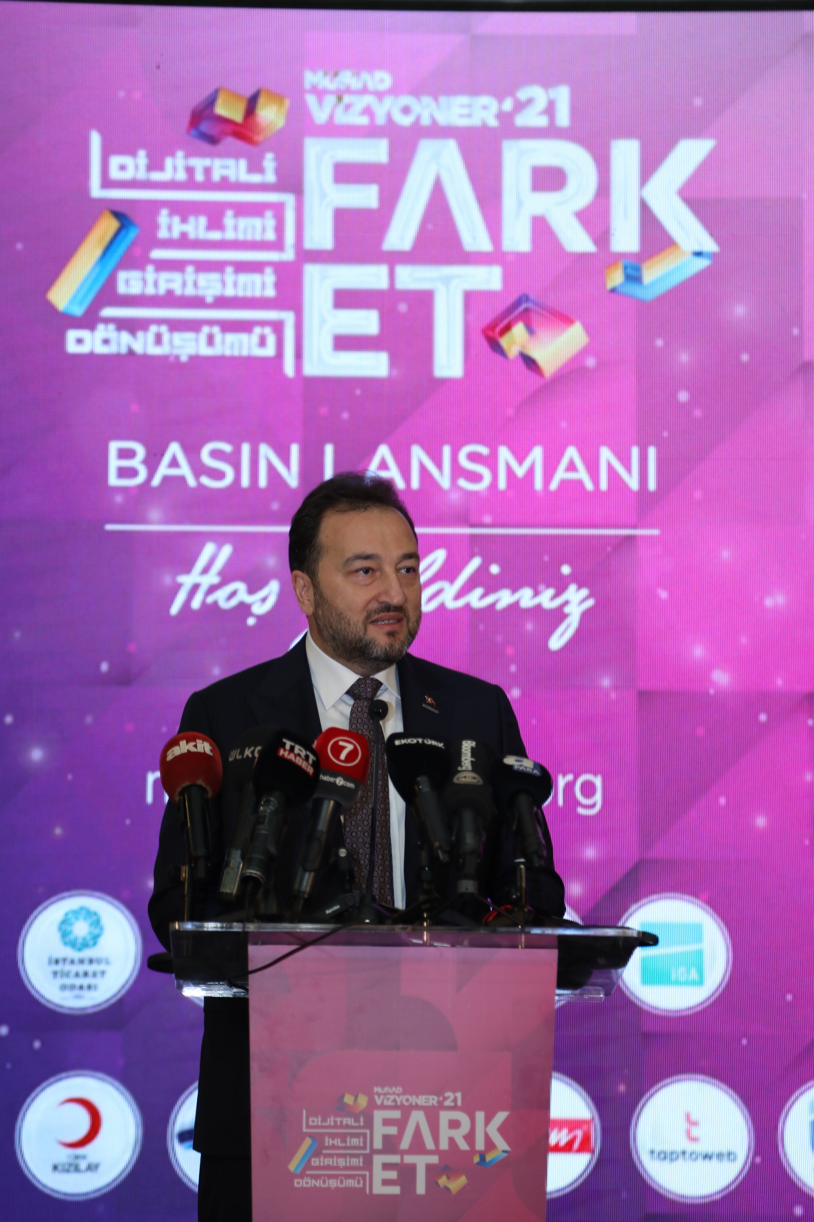 "MÜSİAD Vizyoner olarak bizler de bu iç görüyle 2021 programımızın başlığını 'Fark Et' olarak belirledik. Çünkü her şey fark ederek başlar ve fark etmek geleceği inşa etmek demektir. Unutulmaması gerekir ki gelişen, dönüşen çağ artık her şeyi fark etmemizi istiyor. Ülkeler inovatif farklılıklarıyla öne geçiyor, markalar en farklı pazarlama taktikleri ve dönüşümleriyle müşterilerine ulaşıyor. Aslında bu devirde fark eden başarıyor. Ticarette başarıyor, dijitalde başarıyor, inovasyonda başarıyor, dönüşümde başarıyor, sağlık alanında başarıyor; kısacası fark eden insan yeni kurulan dünya düzeninin başrolünde yerini alıyor. Bizler de MÜSİAD Vizyoner ailesi olarak, ülkemizin küresel arenada başrolde olmasını istiyoruz, bu nedenle de fark et diyoruz."