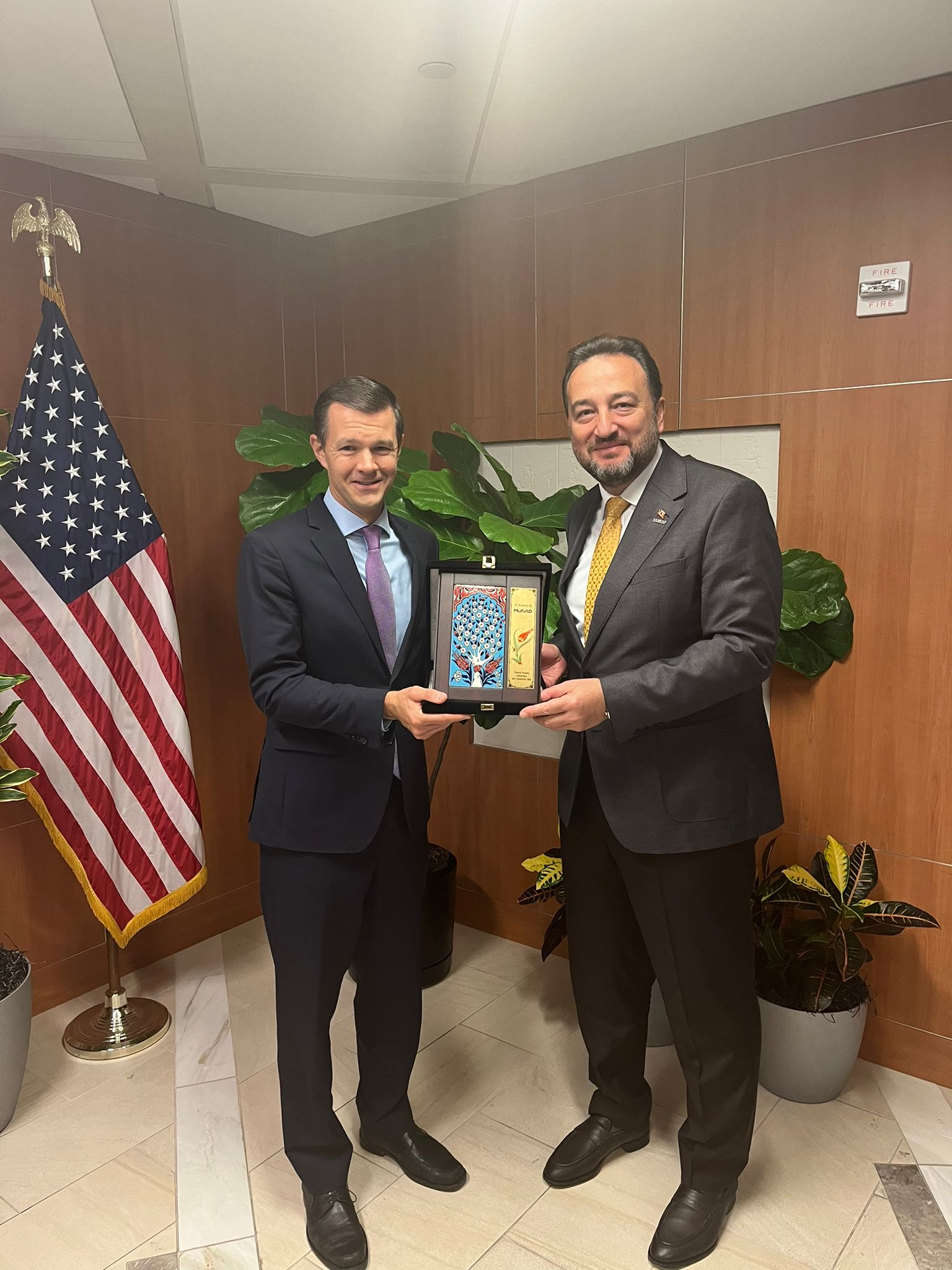 MÜSİAD Genel Başkanı Mahmut Asmalı ve MÜSİAD Yönetim Kurulu Üyeleri ayrıca, Washington temasları kapsamında Türkiye'nin Washington Büyükelçisi Murat Mercan'ı ziyaret ederek, MÜSİAD çalışmaları ve bölgedeki ticaret yaşamına yönelik fikir alışverişinde bulundu.