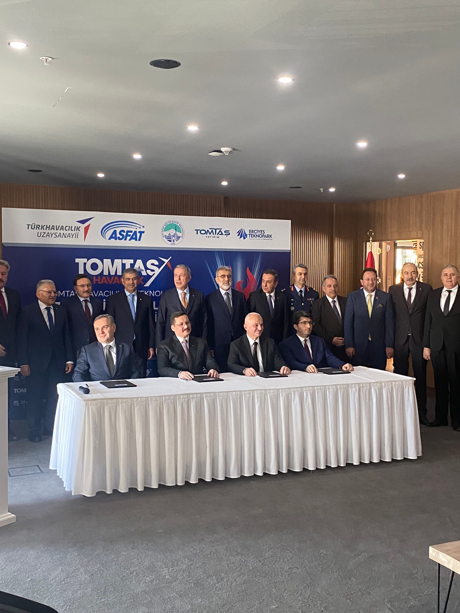 MÜSİAD Kayseri, Türk Havacılık Uzay Sanayi, ASFAT, TOMTAŞ Yatırım ve Erciyes Teknopark güç birliği ve ortak yatırımıyla kurulacak TOMTAŞ Havacılık ve Teknoloji Anonim Şirketi imza töreni Milli Savunma Bakanı Sayın Hulusi Akar’ın teşrifleriyle Kayseri’de gerçekleşti.
