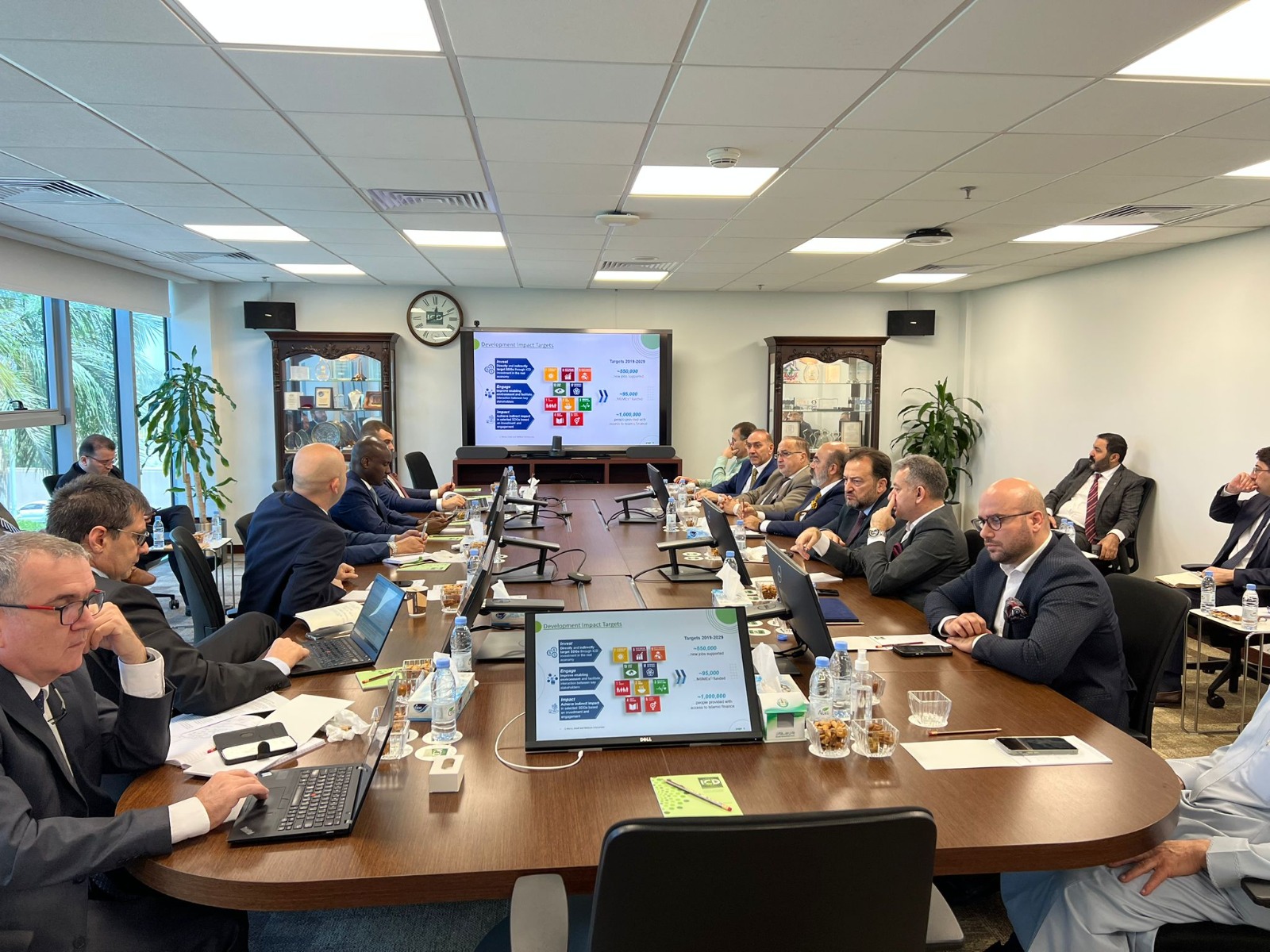Başkonsolosluk ziyaretinin ardından İslam Kalkınma Bankası yetkilileri ile bir araya gelen MÜSİAD heyeti, İslam Kalkınma Bankası Strateji, Politika ve Araştırma Direktörü Osman Büyükmutlu ve Sahra Altı Afrika ve Avrupa Bölümü İş Geliştirme Müdürü Oğuz Aktuna'dan muhtemel iş birliği alanları, uluslararası çalışmalar, bölgesel yatırım ve ticaret fırsatlarına yönelik bilgi aldı.