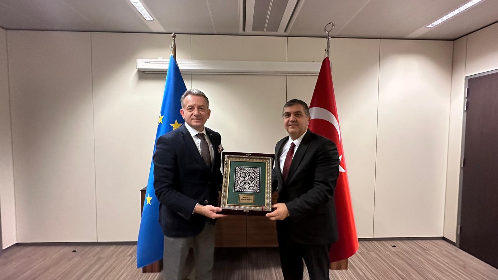 Avusturya ve Hollanda temasları sonrası Belçika programı ile Avrupa İş Gezisi'ne devam eden MÜSİAD heyeti, Avrupa Birliği Nezdinde Türkiye Cumhuriyeti Daimi Temsilcisi Büyükelçi Faruk Kaymakçı'yı ziyaret etti.