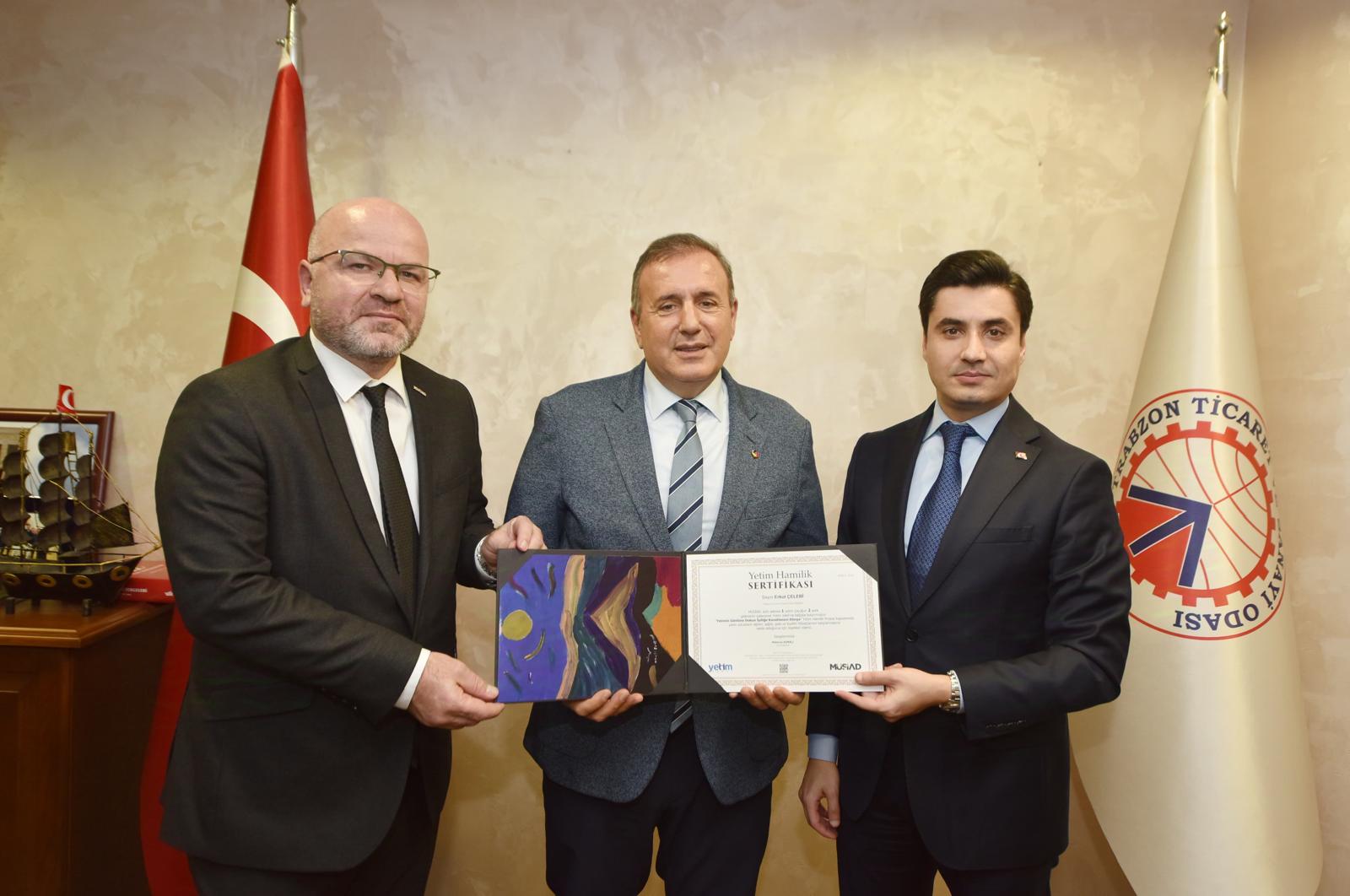 Program kapsamında gerçekleştirilen kurumsal ve üye ziyaretlerinde, Özgüneş Ticaret A.Ş. Yönetim Kurulu Başkanı Halis Güneş, Trabzon LPG San. Nak. Tic. A.Ş. Yönetim Kurulu Başkanı Aydın Birincioğlu, H.C. Gıda ve Unlu Mamul Yönetim Kurulu Başkanı Şener Kalkışım ve Trabzon Ticaret ve Sanayi Odası Başkanı Erkut Çelebi’ye ziyaretler gerçekleştirildi. Ziyaretlerde, MÜSİAD’ın kadim bir geleneği olan “Yetim Hamiliği Sertifikası” kendilerine takdim edildi.