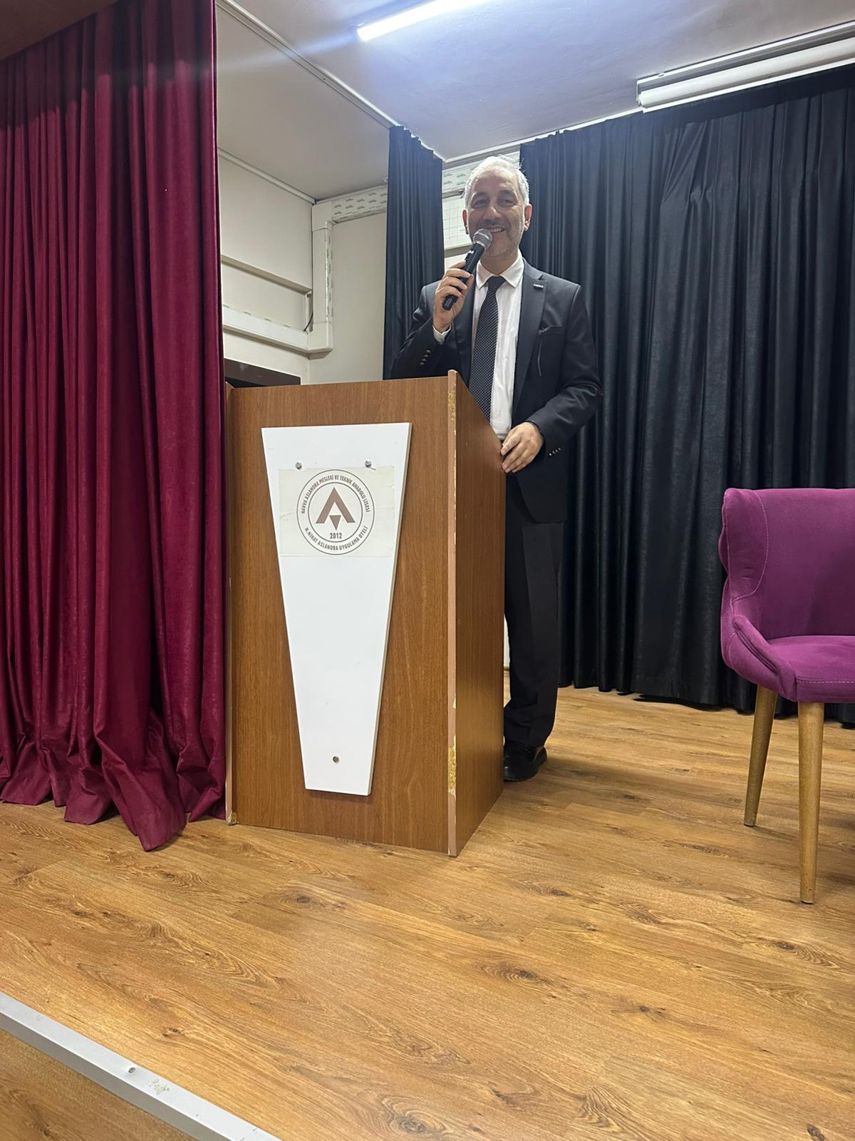 Programın devamında Turizm Sektör Kurulu Başkanımız Mecit Kılınçarslan öğrencilere hitap etti. Kılınçarslan konuşmasında MÜSİAD’ın yapısını, sektör kurulunun çalışmalarını ve turizmin geniş istihdam alanlarını anlattı. Eğitim sürecinde doğru birikimin gelecekte büyük başarıların temelini oluşturduğunu ifade ederek, öğrencilerin iş hayatında cesur adımlar atmaktan çekinmemeleri gerektiğini vurguladı. Dünyanın neresine gidilirse gidilsin, kişinin özünü, kültürünü ve değerlerini korumasının önemine dikkat çekti.