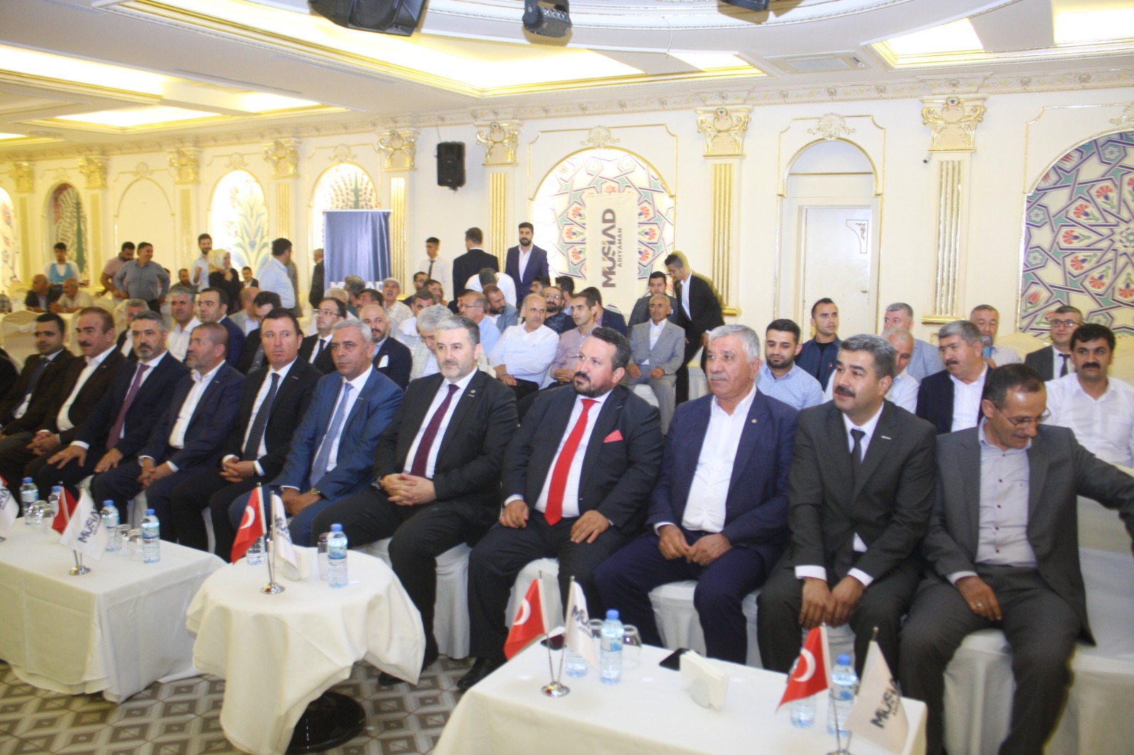 Kaan, konuşmasının ardından MÜSİAD Adıyaman Şube Başkanlığına seçilen Sait Göksu'ya plaket ve çeşitli hediyeler verdi.